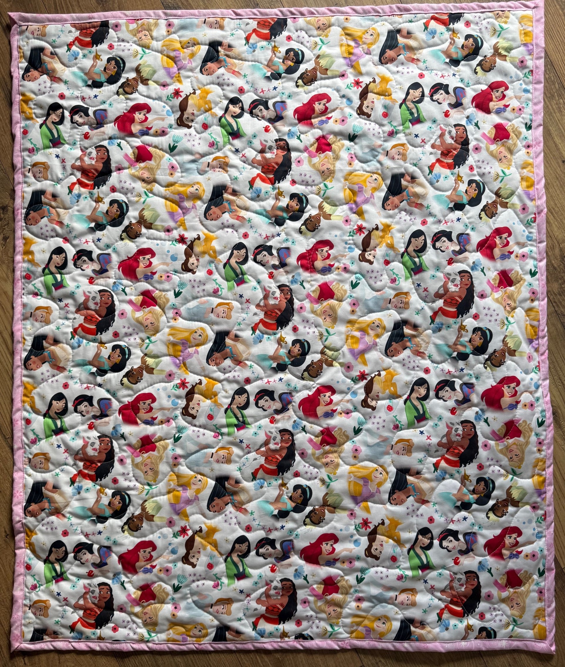 DISNEY PRINCESS Inspired ARIEL, SNOW WHITE, CINDERELLA, AURORA, MOANA, BELLE, JASMINE, POCAHONTAS, MULAN, RAPUNZEL, TIANA & CINDERELLA Quilted Blanket