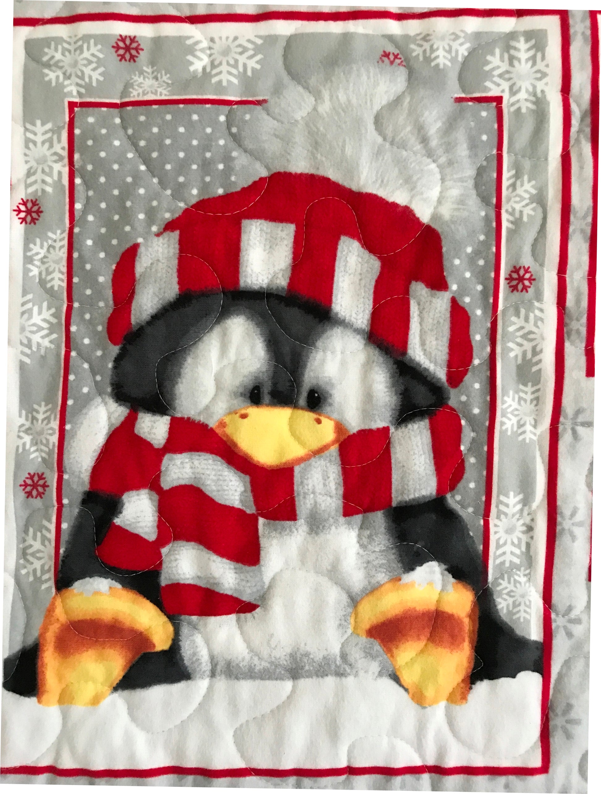 Winter Artic Penguins & Polar Bear Friends Soft Flannel Front Quilted Blanket Nursery Child Baby Toddler bedding