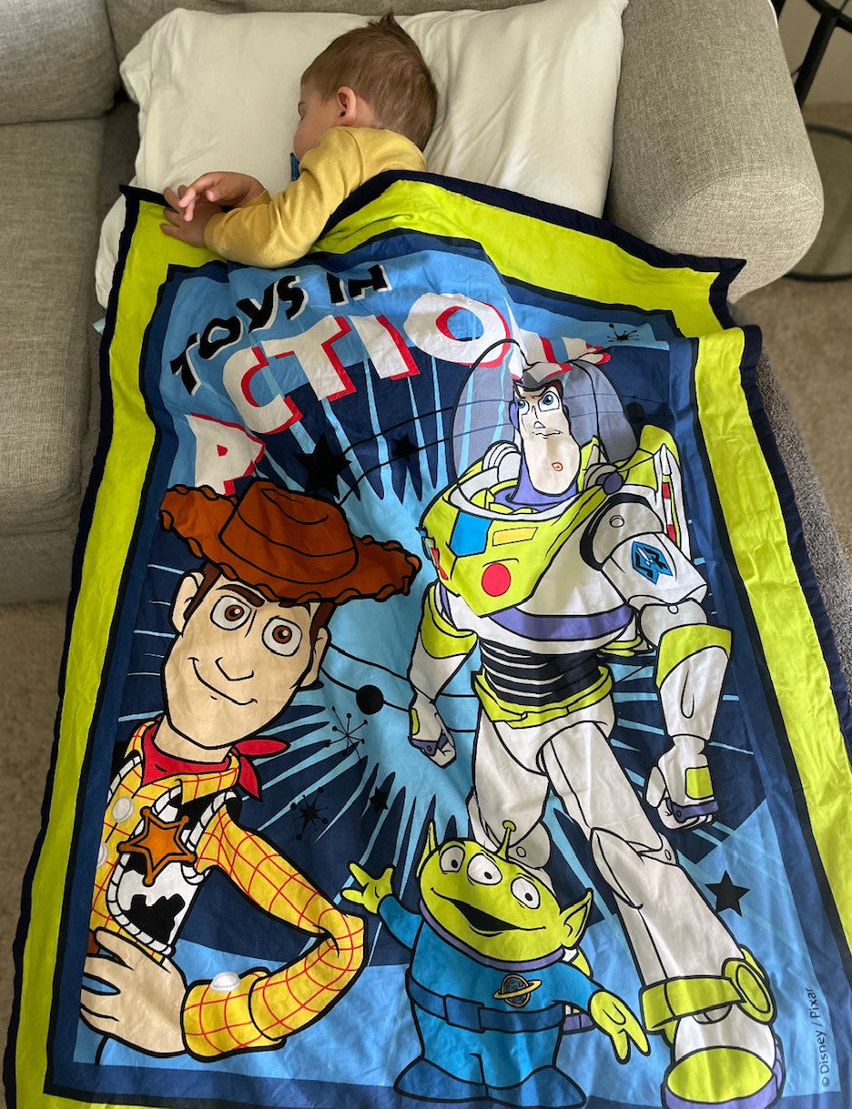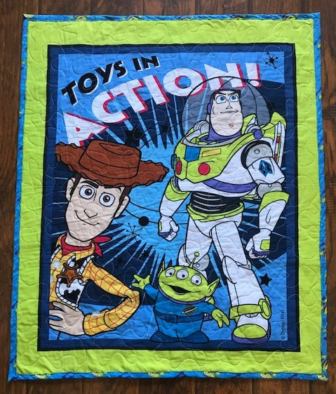 Beautiful quilt! I was so happy to find this because I couldn’t find a Toy Story quilt anywhere.