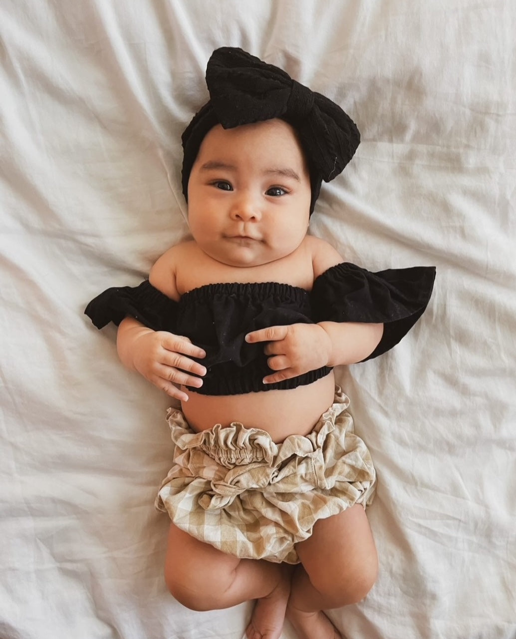 2 Piece OutfitLittle Angel in her 2 piece off the shoulder and bloomer outfit.