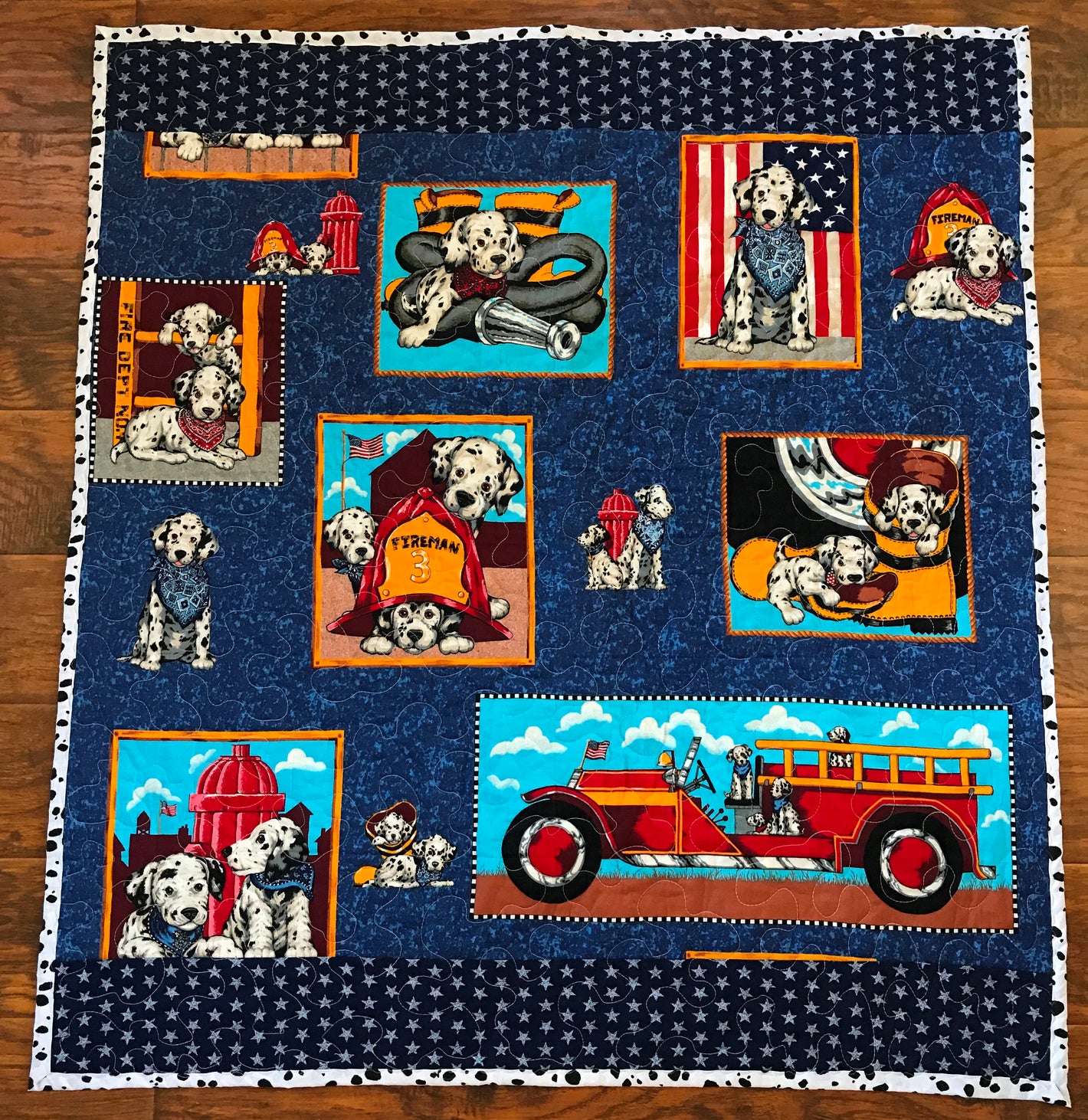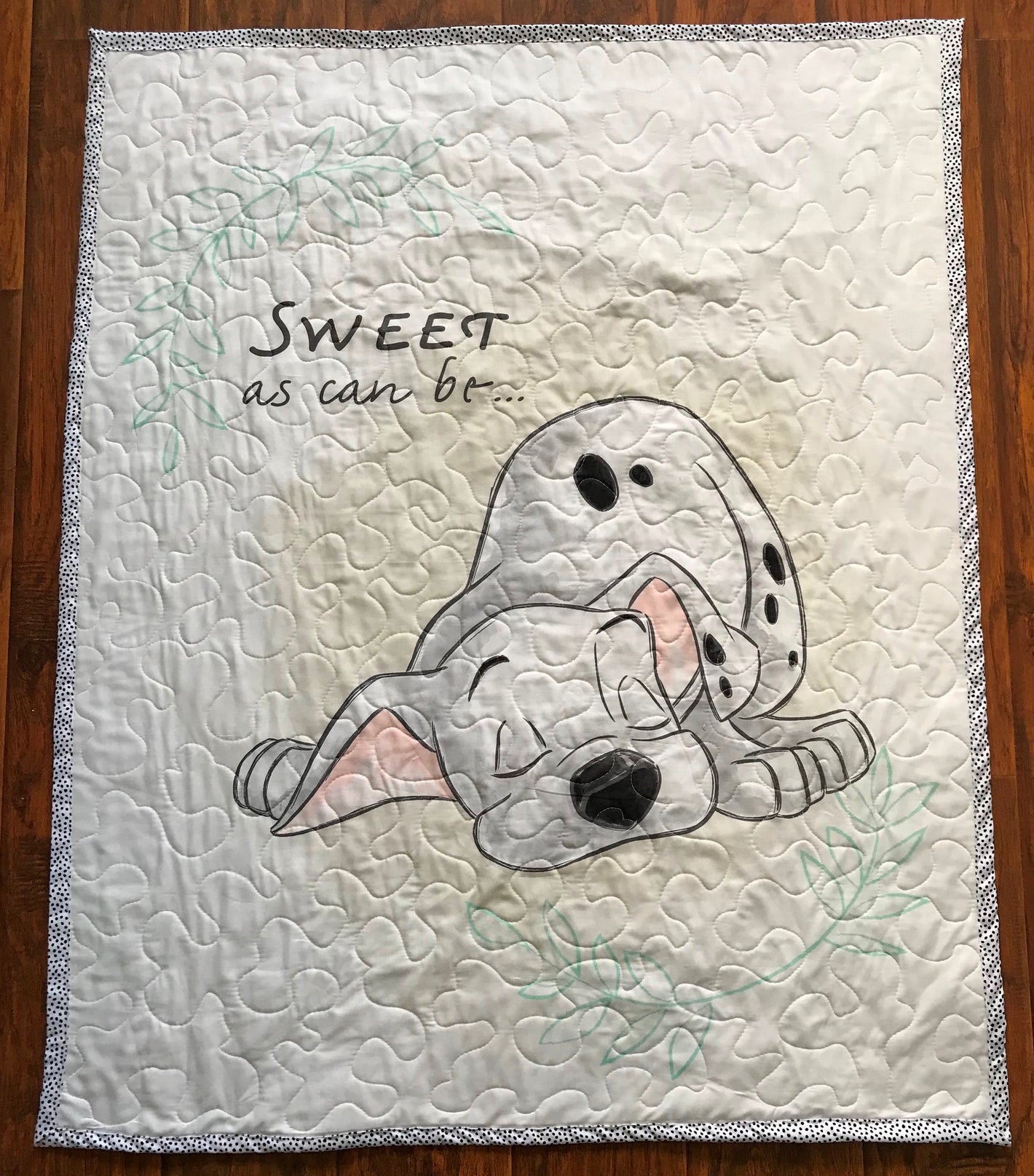 Beautiful, beautiful, beautiful!! I love this quilt! It is very well made, and looks wonderful. It will go perfectly in our 101 Dalmatians Nursery. I love that it was in theme without being overwhelming and a beautiful simple design.
